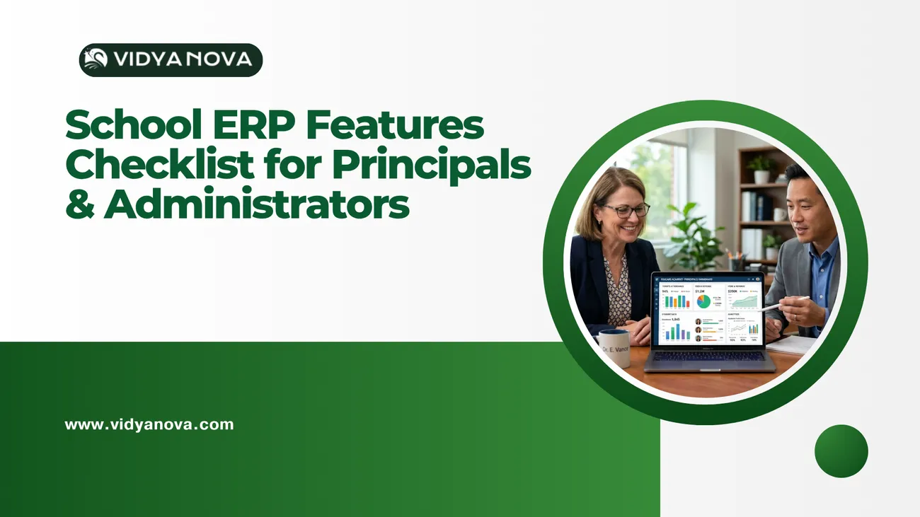 This blog provides a practical checklist for school leaders evaluating ERP systems (illustrated with Vidyanova). It explains why a student management system matters and outlines core modules—SIS, attendance, academics, assessments, timetabling, fees, HR—plus parent/student engagement, transport, library, inventory, reporting, security, integrations, and deployment options. It covers usability, onboarding, migration, ROI, common implementation pitfalls, demo tasks, vendor scoring, pilots, contract and pricing considerations, and support expectations. The purpose is to help principals, administrators, and IT heads compare vendors, run effective demos and pilots, avoid mistakes, and choose an ERP that staff will adopt and that delivers measurable operational benefits.